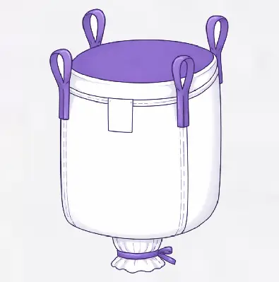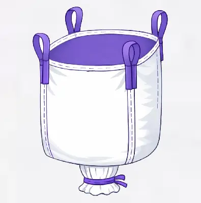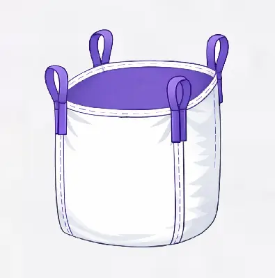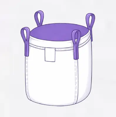 Bolsa Big Bag de carga superior abierta y base cerrada, ideal para llenado rápido y almacenamiento seguro de materiales secos a granel.